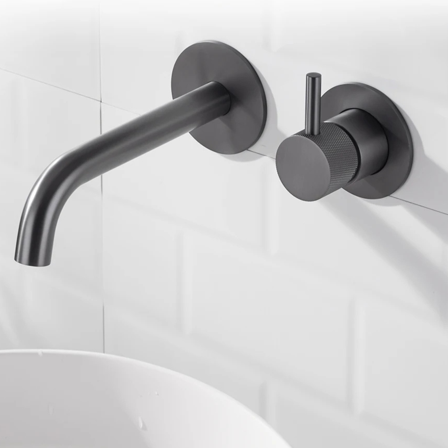 BASEL Wall-Mounted Knurled Brass Bathroom Faucet